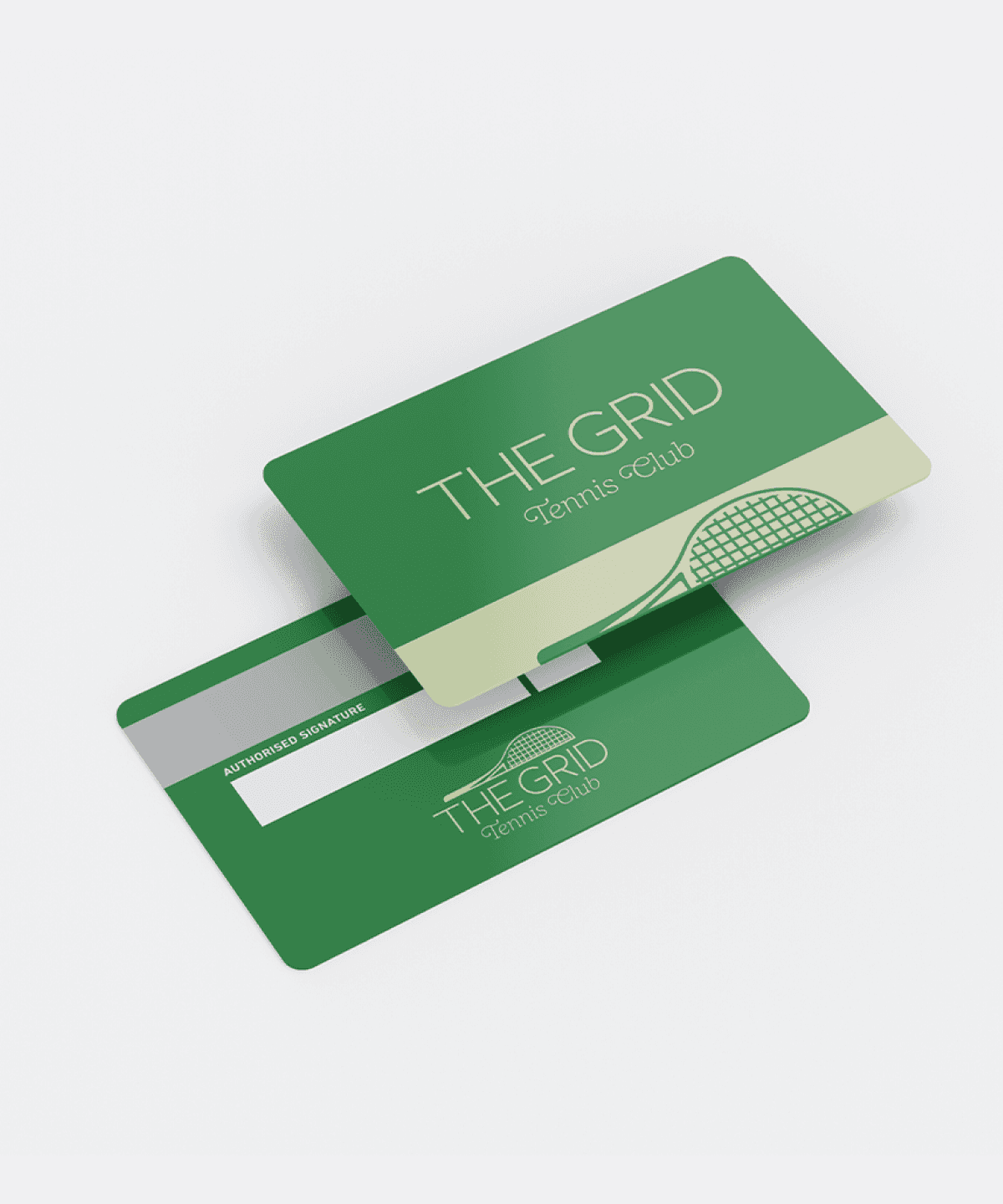 Brand identity and membership card design for The Grid, a modern tennis club for players who love the game and the energy that comes with it. It’s the perfect place to train, compete and connect.